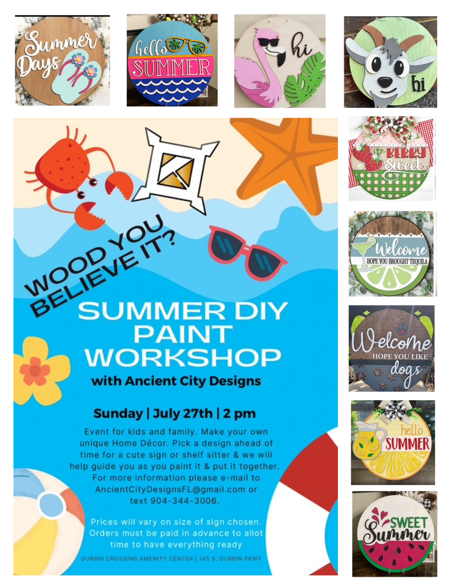 Ancient City Summer Workshop Summer is here and our friends at Ancient City Workshop are excited to return to Durbin Crossing! Choose from a number of fun summer designs to make your own. RSVP HERE! + Add to Google Calendar + iCal / Outlook export Date Jul 27 2025 Expired! Time 2:00 pm - 5:00 pm More Info Click here to RSVP